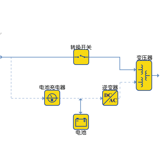 ? ? ? 后備式-鐵磁共振式UPS系統(tǒng)常被視為在線裝置,即使該類設(shè)備具有轉(zhuǎn)換開關(guān),逆變器在后備式模式下工作,并且在交流電源出現(xiàn)故障時(shí)表現(xiàn)出了轉(zhuǎn)換特征。
